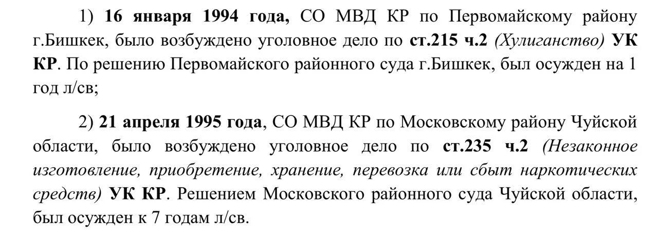"Кылмышка шектүүнүн жаш курагын эске алып, “окшошпой жатат, башканы эле кармап алдыңар” деген талкууларга чекит коелу. Милиция өз ишин кылып жатат, ар бирибиз эле эксперт боло бербейли. Кылмышка шектүүнүн адам өлтүрүүгө чейинки жүргөн жерлери, видеолору, 100% тастыктаган далилдердин баары ИИМде бар. Жөн эле бир байкушту кармап алып, мойнуна илип коюу оюнчук эмес. Бул окуя резонанска айланды, ИИМ дыкат жана оперативдүү иштеди. 100 пайыз тастыктаган маалыматтарга ээ!